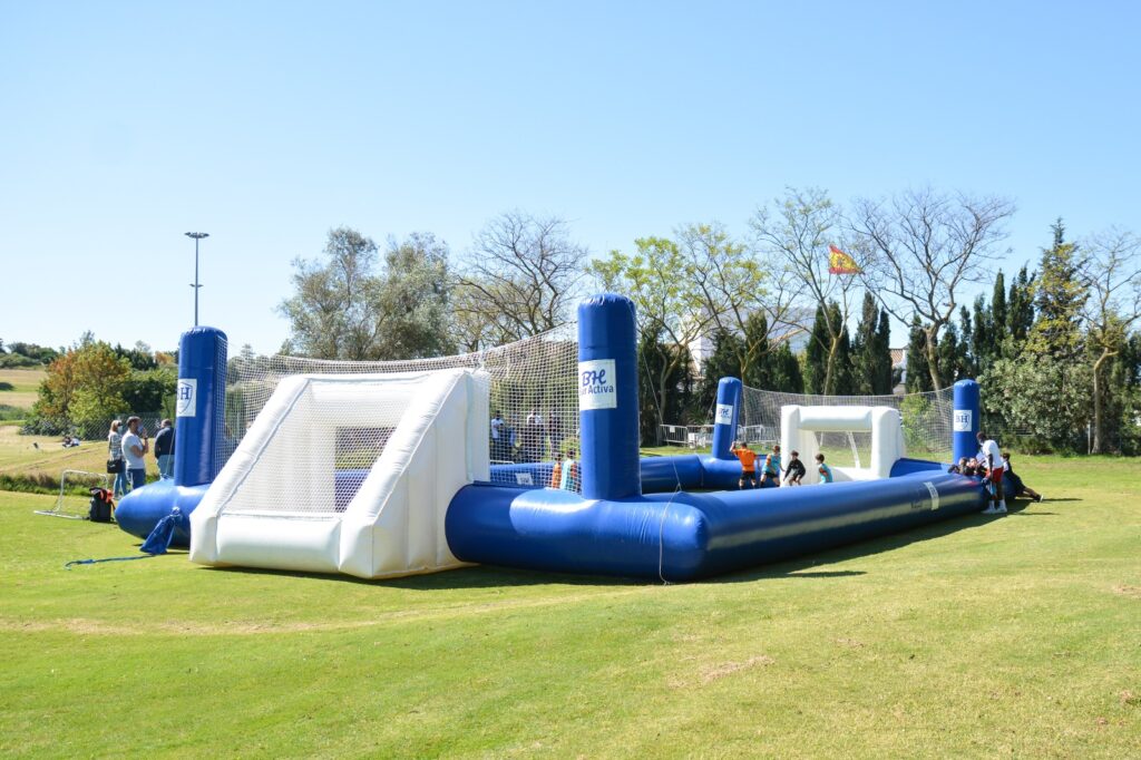 Campo de Fútbol Hinchable El sueño de todo futbolista es jugar en un gran estdio de fútbol, ¿y has solado alguna vez en jugar en un Campo de Fútbol Hinchable?Diversión y Fútbol siempre van de la mano, y aún más con nuestros campos.200 m2 donde poder hacer tus mejores regates.